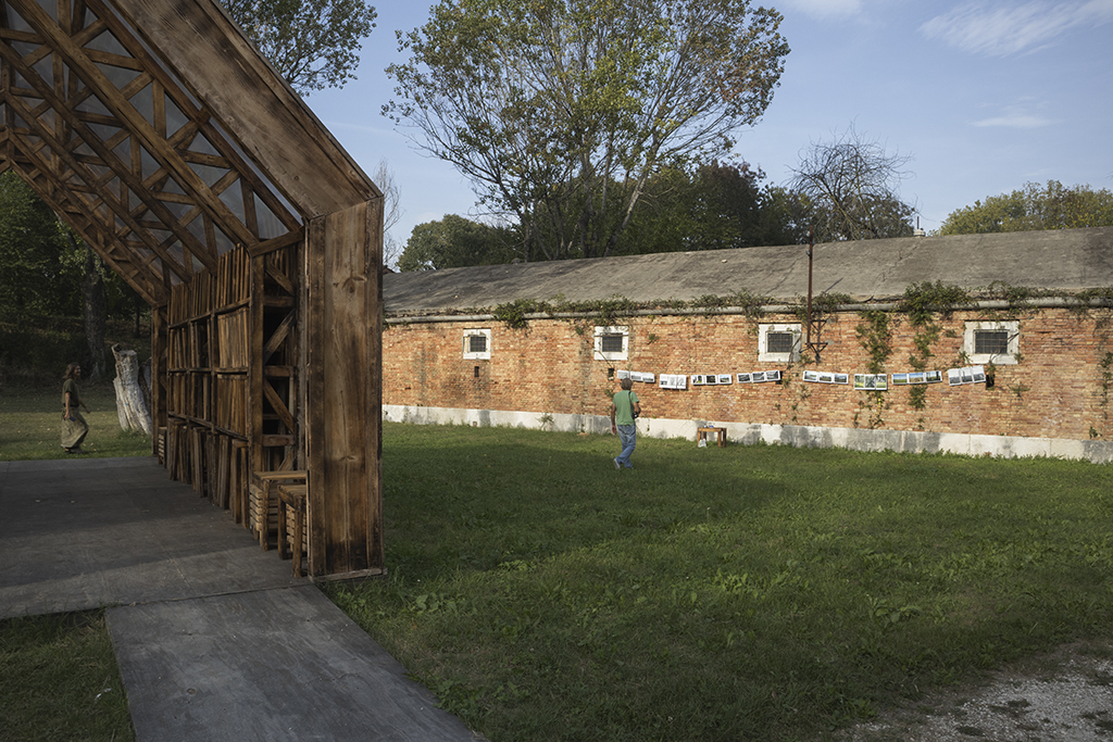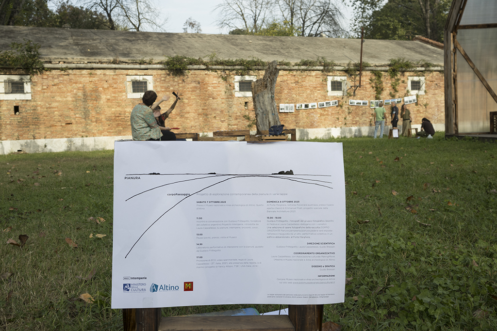 Al ser un lugar cuidado y en uso, nuestra intervención fue mínima: un simple hilo del que colgamos algunas de las imágenes del proyecto Doble Horizonte, que une trabajos de los integrantes del Progetto Skonfini y del Proyecto Intemperie.